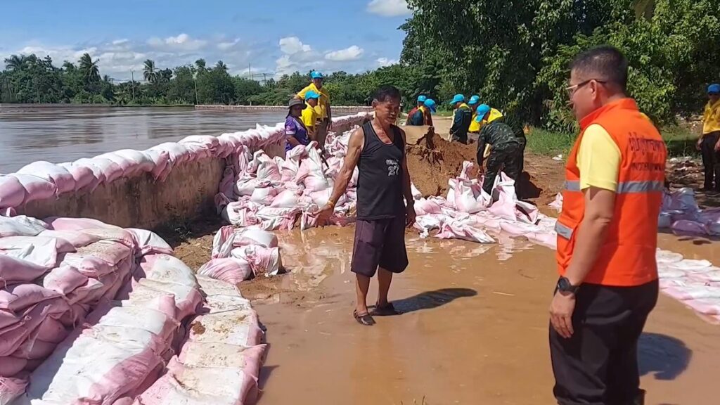 นายสุชาติ ทีคะสุข ผู้ว่าราชการจังหวัดสุโขทัย พร้อมคณะ เดินทางลงพื้นที่บริเวณริมตลิ่งแม่น้ำยม หลังวัดปากแคว สั่งคุมเข้มเสริมแนวป้องกันกระสอบทรายสองฝั่งแม่น้ำยม โดยเน้นจุดเสี่ยงที่อาจเกิดภาวะน้ำล้นตลิ่งตลอดแนวแม่น้ำยมใน 4 อำเภอตอนล่าง ได้แก่ อ.สวรรคโลก, อ.ศรีสำโรง, อ.เมือง และ อ.กงไกรลาศ โดยมวลน้ำจาก จ.แพร่ ที่ไหลบ่าลงมาจะเข้าสู่พื้นที่ จ.สุโขทัย ที่สถานีวัดระดับน้ำ Y 14 ของชลประทานที่ อ.ศรีสัชนาลัย ในปริมาณมากถึง 1,450 ลบ.ม.ต่อวินาที ช่วงค่ำวันนี้ (24 ส.ค.) และคาดการณ์ว่าจะไหลบ่าเข้าสู่พื้นที่ อ.เมืองสุโขทัย ในจุดพีคสูงสุดช่วงเที่ยงของวันพรุ่งนี้ (25 ส.ค)