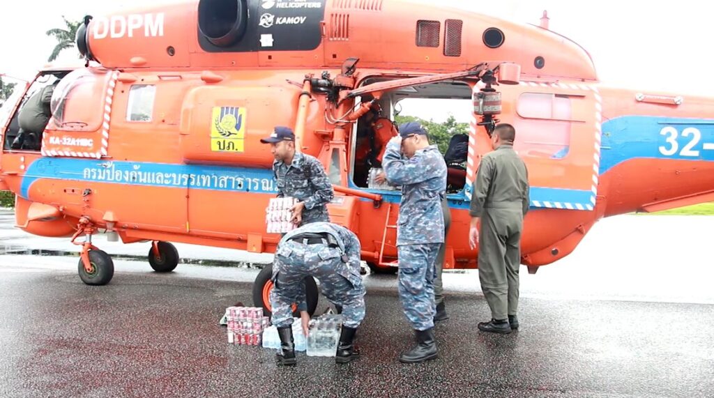 ที่จังหวัดเชียงราย วันนี้สำนักงานป้องกันและบรรเทาสาธารณะภัยจังหวัดเชียงราย ได้นำสิ่งของอุปโภคบริโภค เพื่อช่วยเหลือผู้ประสบอุทกภัยในพื้นที่ อำเภอเทิง โดยการลำเลียงทางอากาศ ทางเฮลิคอปเตอร์ ปภ.32-01 ของกรมป้องกันและบรรเทาสาธารณะภัย ซึ่งได้รับการสนับสนุนเครื่องอุโภคบริโภคจาก ฝูงบิน 416 กองทัพอากาศ สำนักงานป้องกันและบรรเทาสาธารณะภัยจังหวัดเชียงราย และภาคเอกชน และไปรับสิ่งของที่โรงเรียนศรีสว่าง อำเภอเทิง ก่อนจะนำไปส่งมอบให้กับประชาชนที่ได้รับความเดือดร้อนจากอุทภัย ที่ โรงเรียนบ้านปางค่า อำเภอเทิง จังหวัดเชียงราย โดยมีผู้ประสบภัยมารอรับสิ่งของอุปโภคหลังจากถูกตัดขาดจากพื้นที่ภายนอก