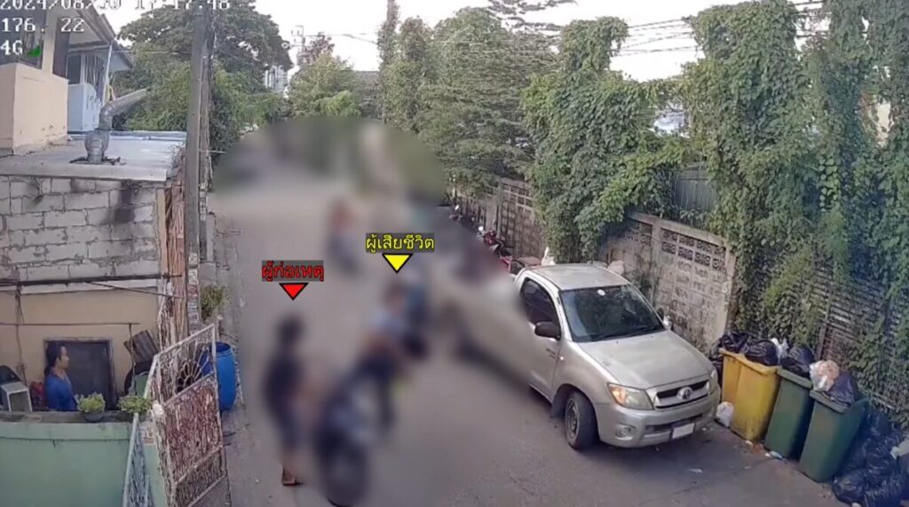 จากนั้นผู้ก่อเหตุทั้ง 2 คนได้วิ่งไล่ผู้ตาย จนไปถึงสามแยก และใช้มีดแทงเข้าที่ใต้รายนม ทำให้ผู้ตายล้มลงนอนกองอยู่กลางถนน โดยเหตุการณ์ดังกล่าว ใช้เวลาเกือบ 2 นาที ก่อนที่ผู้ก่อเหตุจะแยกย้ายเดินไปขี่รถ จยย.ซ้อนท้ายกัน หลบหนีไป