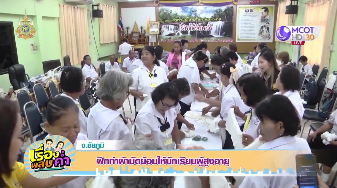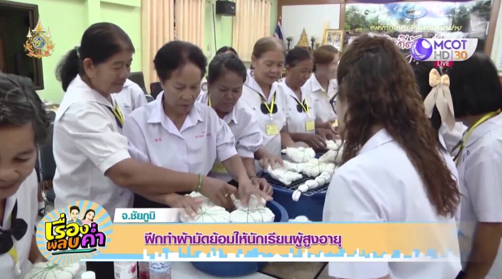 ชัยภูมิ 2 ก.ย. – อบต.นาฝาย จ.ชัยภูมิ เปิดสอนทำผ้ามัดย้อมให้นักเรียนผู้สูงอายุในชุมชน หวังผู้สูงอายุได้ใช้เวลาว่างให้เกิดประโยชน์ นำไปประกอบอาชีพได้ แถมช่วยคลายความเหงา ป้องกันสมองเสื่อม