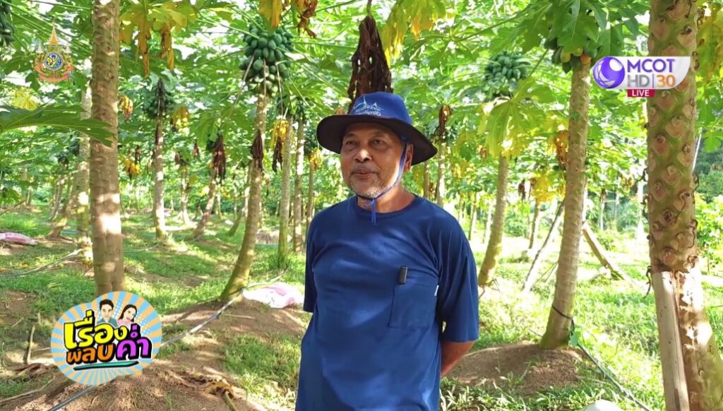 ที่สวนรอยยิ้มบ้านสวนเกษตรปลอดภัย ของนายจิระศักดิ์ และนางสาวปารมี คู่สามีภรรยาวัย 62 ปี ที่ตัดสินใจทิ้งชีวิตในกรุงเทพฯ กลับมาทำการเกษตรที่บ้านเกิด ต.โคกสะบ้า อ.นาโยง จ.ตรัง ทั้งคู่ใช้พื้นที่ข้างบ้านประมาณ 3 ไร่ แบ่ง 1 ไร่เศษ ปลูกมะละกอสายพันธุ์เรดเลดี้ 200 ต้น และมีแผนจะปลูกเพิ่มอีก 100 ต้น นอกจากนี้ยังแบ่งพื้นที่ปลูกพืชผักสวนครัว และจัดสรรพื้นที่สำรองน้ำ พร้อมติดตั้งระบบมินิสปริงเกอร์เพื่อการดูแลที่มีประสิทธิภาพ
