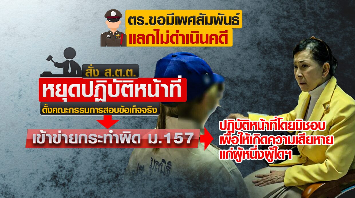 ปทุมธานี 9 ก.ย. – นักศึกษาสาวปี 4 เข้าร้อง “ปวีณา หงสกุล” หลังถูกตำรวจบังคับให้มีเพศสัมพันธ์ พร้อมกับจ่ายเงิน 10,000 บาท แลกกับการไม่ดำเนินคดีเมาขับ