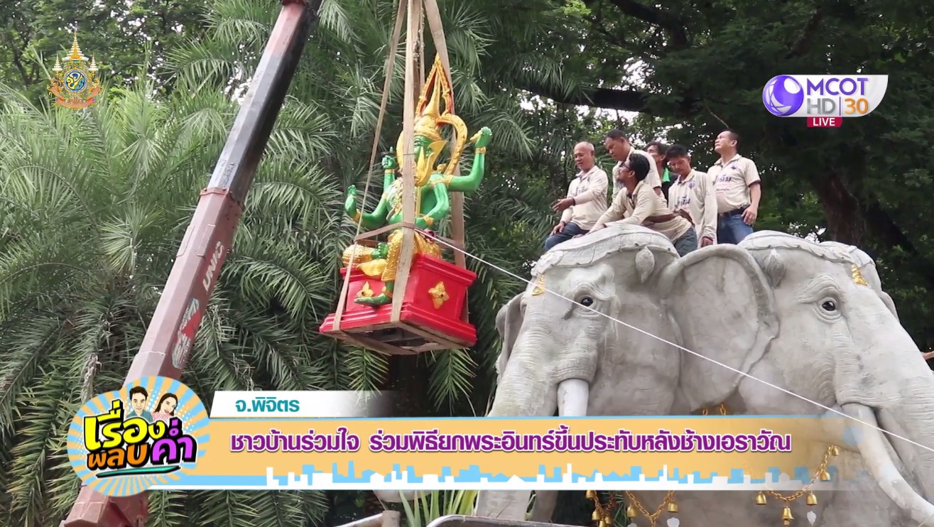 พระสงฆ์วัดโรงช้าง พร้อมชาวบ้าน ต.โรงช้าง อ.เมือง จ.พิจิตร ร่วมกันจัดสร้างรูปปั้นช้างเอราวัณสามเศียรขนาดใหญ่ และได้ร่วมกันประกอบพิธียกพระอินทร์ขึ้นประทับบนหลังช้างเอราวัณสามเศียรขนาดใหญ่ สูงกว่า 4 เมตร สวยงามเสมือนจริง มีการตั้งเครื่องบวงสรวงเซ่นไหว้ พระสงฆ์ 9 รูป เจริญมนต์คาถา ซึ่งในการยกพระอินทร์ขึ้นประทับบนหลังช้างเอราวัณ ต้องใช้รถเครนขนาดใหญ่ เพราะองค์พระอินทร์เป็นปูนปั้นที่มีน้ำหนักหลายร้อยกิโลกรัม ท่ามกลางชาวบ้านที่ร่วมกันส่งจิตศรัทธาให้การยกสำเร็จ ขณะที่บรรดานักเสี่ยงโชค ต่างพากันส่องเลขทะเบียนรถ เพื่อนำไปเสี่ยงโชคด้วย