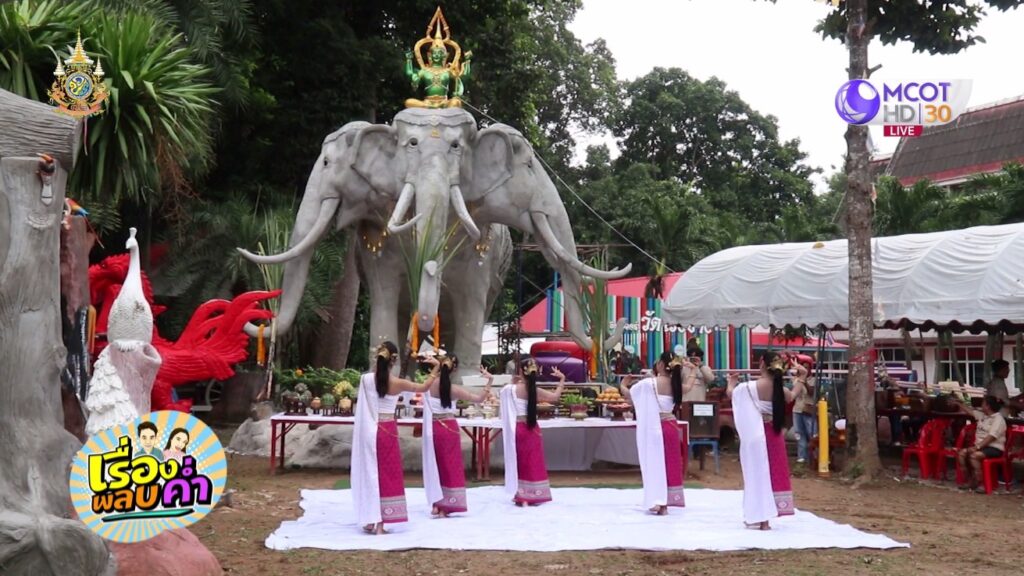 หลังจากทำการยกเสร็จแล้ว ชาวบ้านต่างนำของเก่า ของมีค่า อาทิ แผ่นจารึกดินเผาพระไตรปิฎก พระเครื่อง พระบูชา ที่นำจากบ้านมาถวายวัด บรรจุลงในท้องของช้างเอราวัณสามเศียร เพื่อเป็นสิริมงคล รวมถึงเก็บไว้ให้ประชาชนที่เดินทางมายังวัดแห่งนี้ได้กราบไหว้ขอพร จากนั้นนางรำได้ร่วมกันรำถวาย ด้วยลีลาอ่อนช้อยสวยงาม