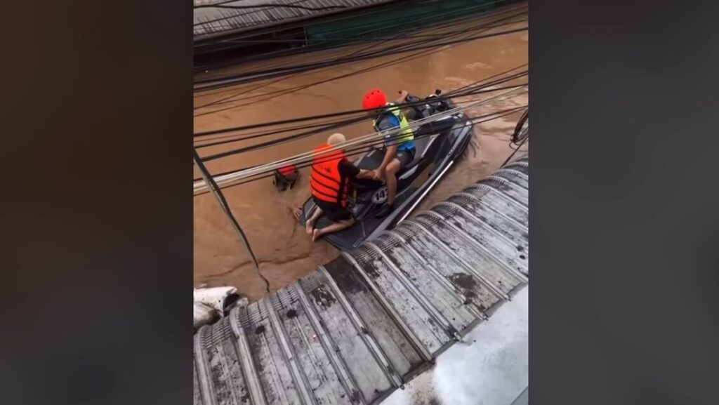 กรณีคุณตา อายุ 86 ปี ติดบนหลังคาเต็นท์เขียงหมู บริเวณตลาดไม้ลุงขน ตั้งแต่ช่วงบ่ายวานนี้ (10 ก.ย.) จนกระทั่งเช้าวันนี้ เป็นเวลาเกินกว่า 20 ชั่วโมง ไม่สามารถเข้าไปช่วยเหลือคุณลุงได้เพราะกระแสน้ำเชี่ยว ไหลแรงมาก และมีการอัปเดตสถานการณ์ตลอดทั้งคืน กระทั่งเวลาประมาณ 10.45 น. เพจกัน จอมพลัง ได้ไลฟ์ขณะแชมป์เจ็ตสกีโลก ฝ่ากระแสน้ำเชี่ยว เข้าไปรับตัวคุณตาออกมาได้แล้ว ท่ามกลางการลุ้นระทึกของทุกฝ่าย