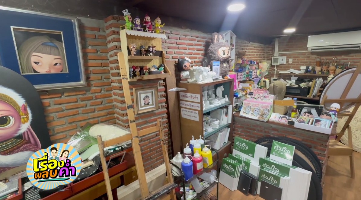 ด้านล่างเป็นห้องศิลปะ ซึ่งเดิมใช้เป็นสตูดิโอศิลปะของพี่สาว แต่เปิดให้ลูกค้าได้ใช้ทำกิจกรรม อาทิ รูปปั้นระบายสี เฟรมผ้าใบ ตามต้องการ ซึ่งการปรับปรุงบ้านใช้ไม้และโครงสร้างเดิม ทำให้ค่าใช้จ่ายไม่มาก