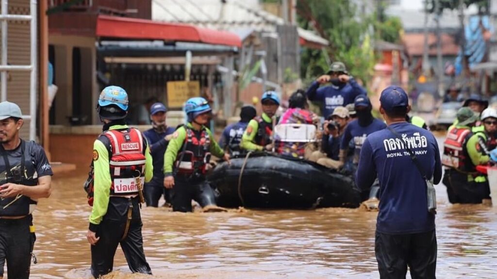 เชียงราย 13 ก.ย. – ธารน้ำใจช่วยเหลือประชาชนยังคงหลั่งไหลไปที่ จ.เชียงราย ทั้งภาครัฐและเอกชน ตอนนี้บางจุดระดับน้ำลดลง แต่บางจุดยังคงมีน้ำท่วมขัง และมีฝนตกลงมา