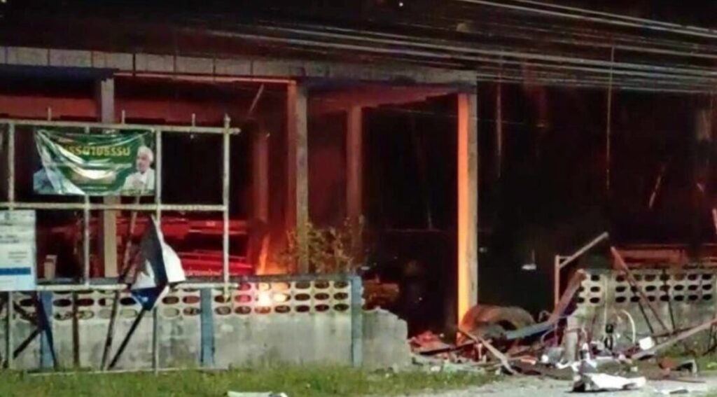 เมื่อเวลา 01.50 น. วันนี้ (14 ก.ย.67) เกิดเหตุกลุ่มคนร้ายลอบวางระเบิดตู้เอทีเอ็มด้านหน้า อบต.บ้านโหนด และวางเพลิงเผาสำนักงาน อบต.บ้านโหนด ต.บ้านโหนด อ.สะบ้าย้อย จ.สงขลา ได้รับความเสียหาย