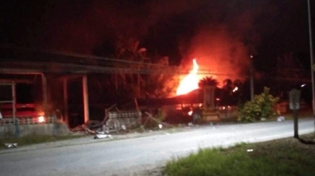 สงขลา 14 ก.ย.-กลุ่มคนร้ายลอบวางระเบิดตู้ ATM และวางเพลิงสำนักงาน อบต.บ้านโหนด จ.สงขลา ไฟลุกไหม้เสียหาย ตร.คาดเป็นฝีมือของกลุ่มก่อความไม่สงบ