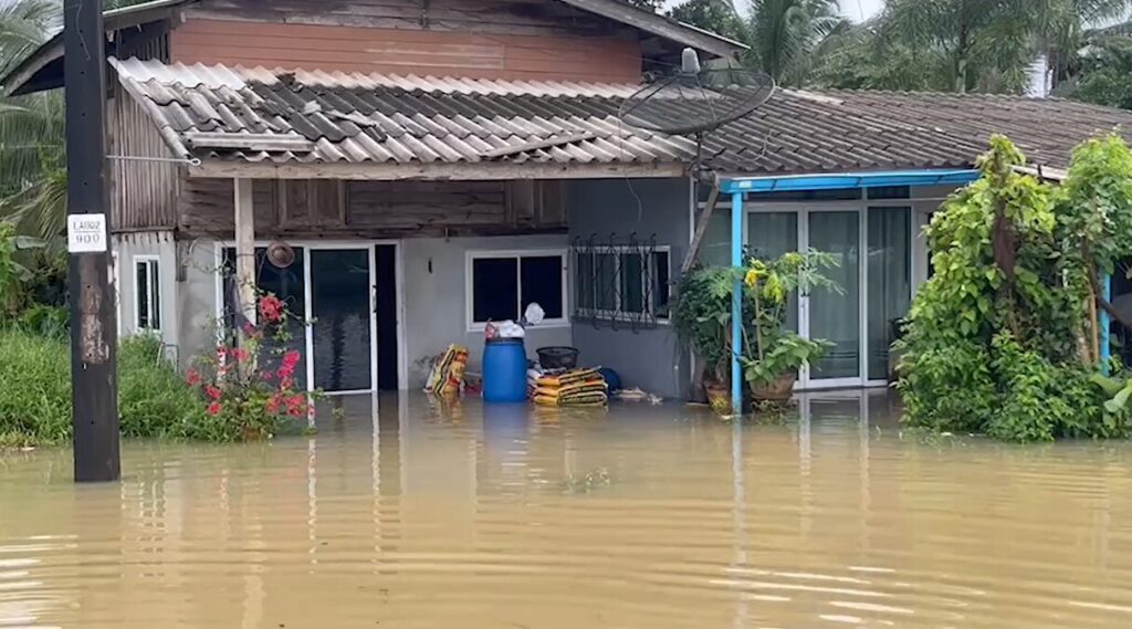 สตูล 16 ก.ย.-ฝนตกต่อเนื่อง น้ำในลำคลองฉลุง หลากท่วมพื้นที่เทศบาลตำบลฉลุง อ.เมืองสตูล ชาวบ้านได้รับความเดือดร้อนหลายพันครัวเรือน