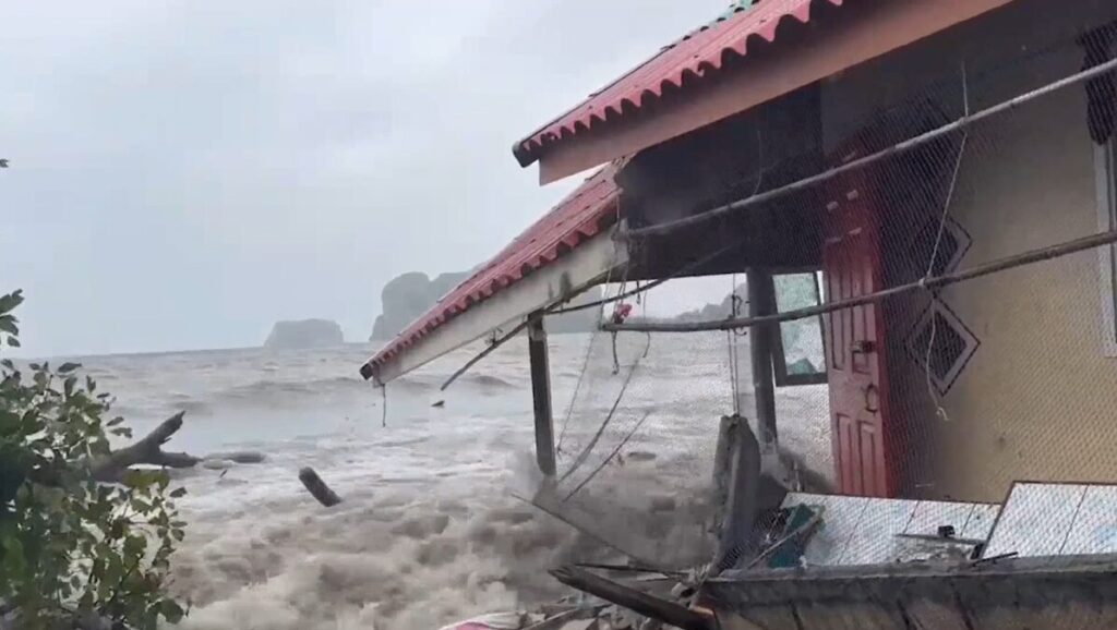 ตรัง 19 ก.ย. – ชาวเกาะลิบงอ่วม พายุคลื่นลมแรง ทำเรือประมงพื้นบ้านล่ม 7 ลำ รีสอร์ต-บ้านเรือนประชาชน พังเสียหายหลายหลัง หนักสุดในรอบ 10 ปี