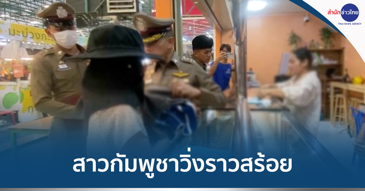 ภาพจากกล้องวงจรปิด จับภาพชัด ขณะที่สาวกัมพูชา ทำทีมาซื้อสร้อย ดูสร้อย แต่พอสบโอกาสก็เนียนวิ่งออกจากร้านทอง เหตุเกิดขึ้นที่ร้านขายเครื่องประดับนาคและจิวเวลรี่ ในตลาด แห่งหนึ่ง ต.บางโฉลง อ.บางพลี จ.สมุทรปราการ ประชาชนที่มาเดินตลาดพากันช่วยจับตัวไว้ได้ ก่อนเจ้าหน้าที่สายตรวจและเจ้าหน้าที่ชุดสืบสวน สภ.บางพลี เดินทางมาตรวจสอบ พบ นางสไรโน ชอ อายุ 32 ปี สัญชาติกัมพูชา ถูกประชาชนช่วยกันควบคุมตัวไว้ พร้อมของกลาง สร้อยคอนาค จำนวน 3 เส้น มูลค่ารวมประมาณ 40,000 บาท อยู่ในมือผู้ต้องหา