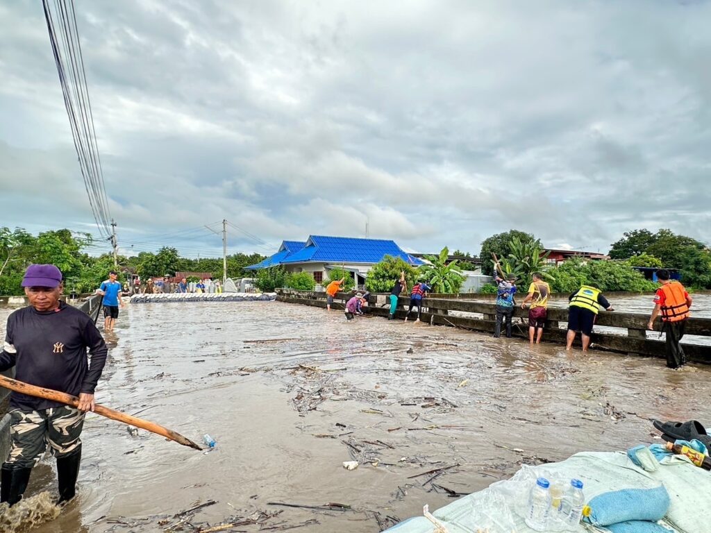 นายสันติธร ยิ้มละมัย ผู้ว่าราชการจังหวัดลำพูน นายอนุพงษ์ วาวงศ์มูล และนายโยธิน ประสงค์ความดี รองผู้ว่าราชการจังหวัดลำพูน ลงพื้นที่ติดตามสถานการณ์การป้องกันและแก้ไขปัญหาอุทกภัย และตรวจเยี่ยมให้กำลังใจเจ้าหน้าที่และประชาชนจิตอาสาที่ช่วยกันปฏิบัติหน้าที่ในพื้นที่อำเภอป่าซาง มีนายภัทรพล ผัดดวงธรรม นายอำเภอป่าซาง ผู้บริหารองค์กรปกครองส่วนท้องถิ่น(อปท.) ผู้นำชุมชน และประชาชนในพื้นที่ที่พักอาศัยริมฝั่งน้ำทาร่วมในการตรวจเยี่ยมครั้งนี้ ที่สะพานหลังตลาดเช้าป่าซาง บริเวณถนนเลียบแม่น้ำทา หลังที่ว่าการอำเภอป่าซาง จังหวัดลำพูน
