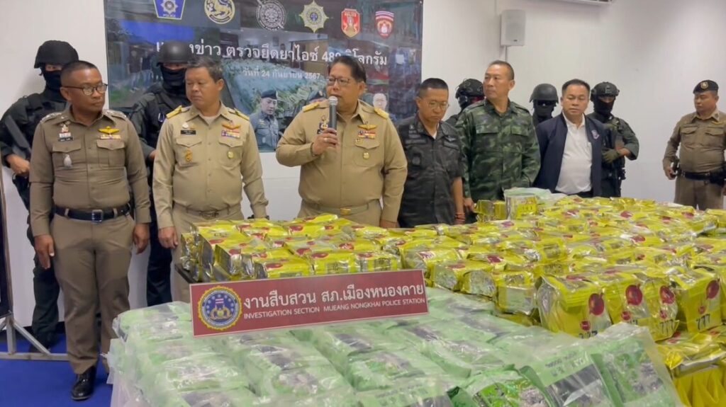 หนองคาย 24 ก.ย. – ตำรวจเมืองหนองคาย ยึดไอซ์ซ่อนในรถเก๋ง 489 กก. มูลค่ากว่า 200 ล้านบาท หลังรับแจ้งเหตุทะเลาะวิวาทที่รีสอร์ต ตามรวบผู้ต้องหาได้ 3 คน เร่งล่าอีก 3 คน