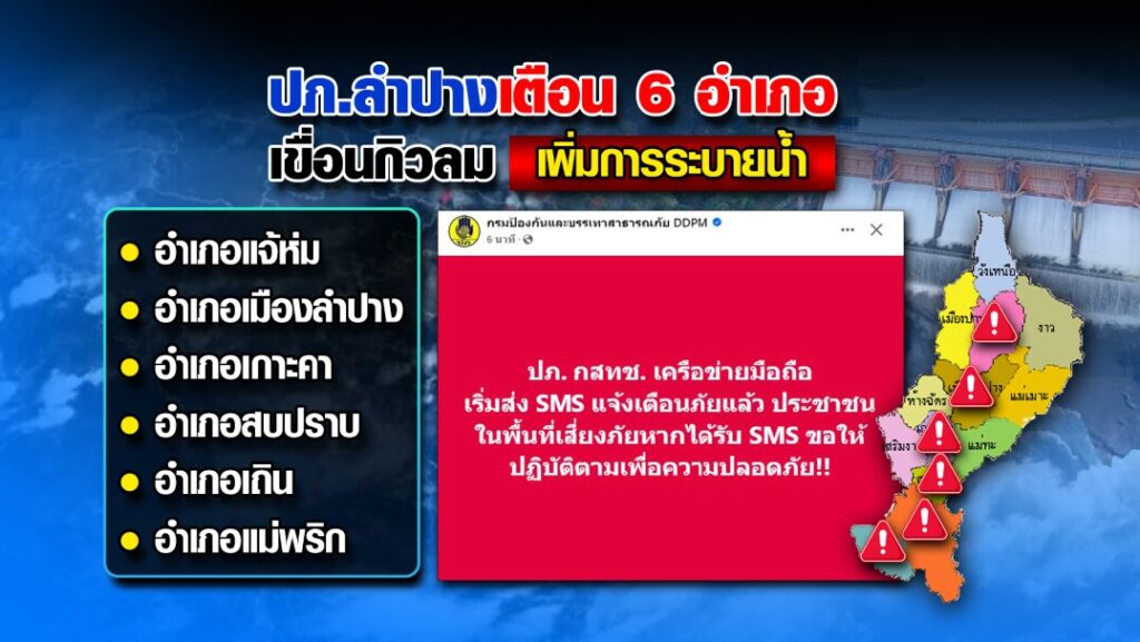 ปภ.เตือนด่วน 6 อำเภอ ระวังเขื่อนปล่อยน้ำเพิ่ม