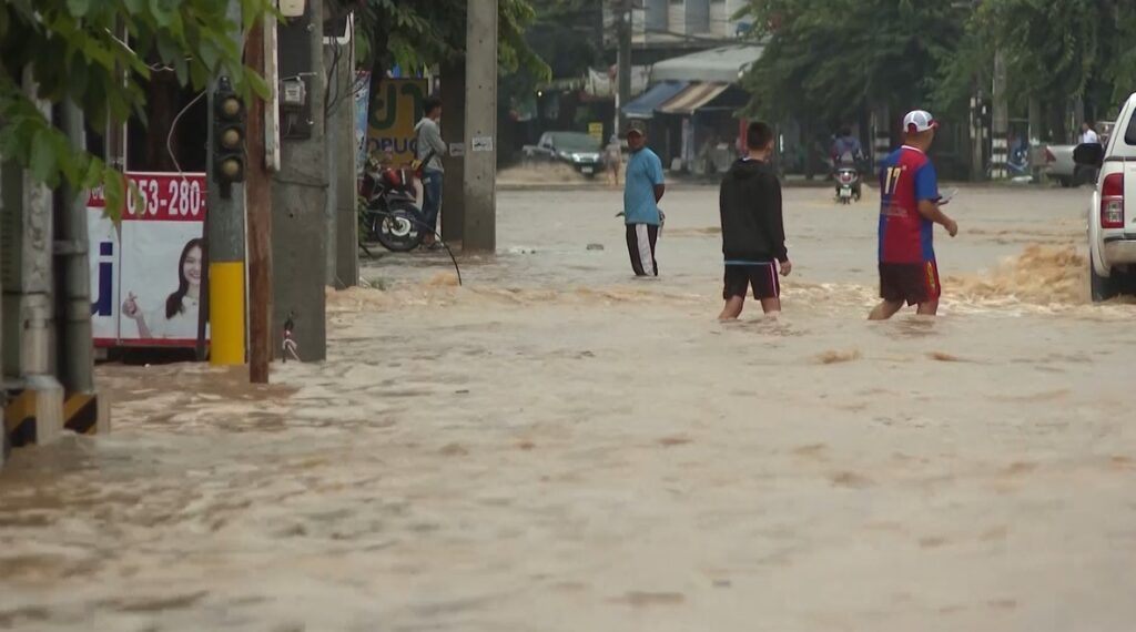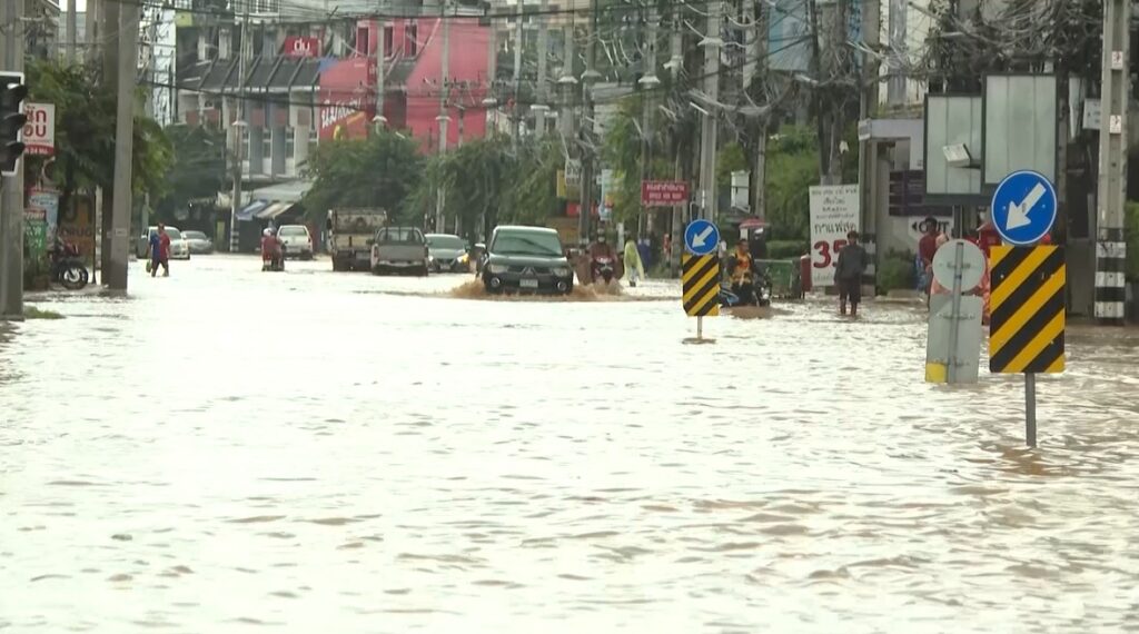 นอกจากนี้น้ำยังไหลเข้าท่วมบ้านเรือนและร้านค้าตามชุมชนพื้นที่ลุ่ม อย่างชุมชนป่าพร้าวนอก บางจุดน้ำท่วมสูงกว่า 1 เมตร ชาวบ้านต้องใช้เรือกันแล้ว รวมถึงถนนเจริญประเทศ ที่เป็นที่ตั้งของโรงเรียนชื่อดังหลายแห่ง ทั้งมงฟอร์ตประถม พหฤทัยและเรยีนาเชลีวิทยาลัย ถูกน้ำท่วมสูง แต่มีการประกาศปิดเรียนล่วงหน้าแล้ว รวมทั้งสำนักงานตำรวจภูธรภาค 5 และแฟลตตำรวจ ถูกน้ำท่วมสูง ตำรวจต้องพายเรือเข้าไปทำงานและเก็บข้าวของ