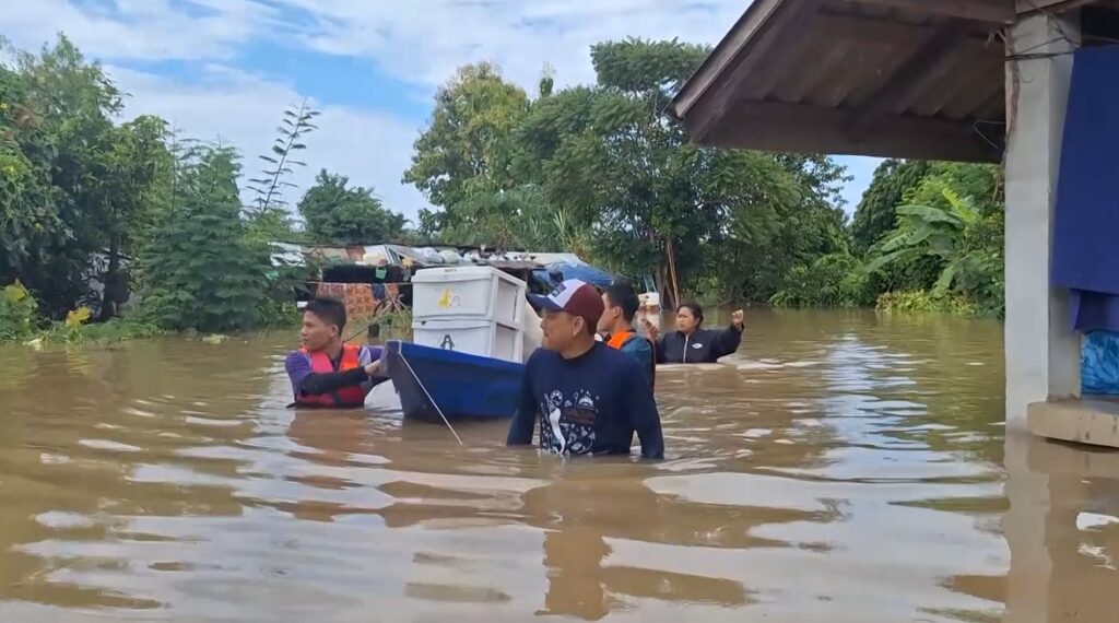 โดยที่หมู่บ้านแห่งนี้ น้ำวังเอ่อท่วมมาตั้งแต่วันที่ 16 กันยายน จนถึงวันนี้ (27 ก.ย.) โดยลึกตั้งแต่ 30 เซนติเมตรจนถึง 1.5 เมตร และขณะนี้น้ำกำลังเพิ่มสูงขึ้น เนื่องจากในพื้นที่มีน้ำป่าไหลมาสมทบ ทำให้ชาวบ้านกังวลใจ เพราะนอกจากที่สองเขื่อนใหญ่ระบายน้ำเพิ่ม ยังมีน้ำป่าจากห้วยแม่หยอน กำลังไหลเข้ามาสมทบอีก เนื่องจากเช้าวันนี้มีฝนตกลงมาอีก และระหว่างที่นักเรียนจิตอาสากำลังแจกข้าว มีชาวบ้านมาร้องขอให้ย้ายสัตว์เลี้ยง เนื่องจากที่บ้านระดับน้ำลึกกว่า 1 เมตร