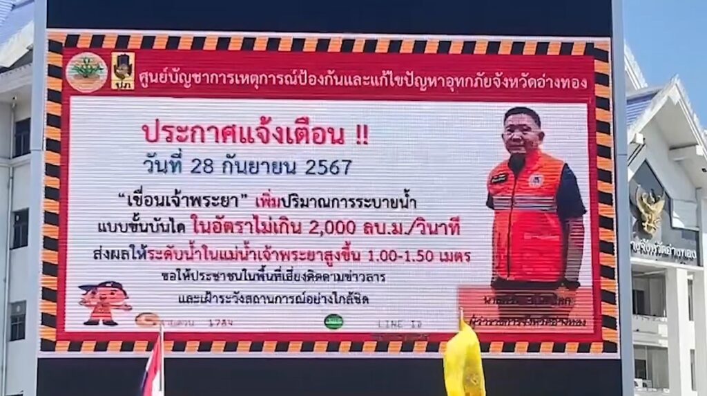 27 ก.ย. – ผู้ว่าฯ อ่างทอง ขึ้นป้ายประกาศสีแดง เตรียมพร้อม 24 ชั่วโมง รับมือน้ำหลาก พร้อมเสริมเครื่องสูบน้ำตลอดแนวศูนย์ราชการและพื้นที่เศรษฐกิจ