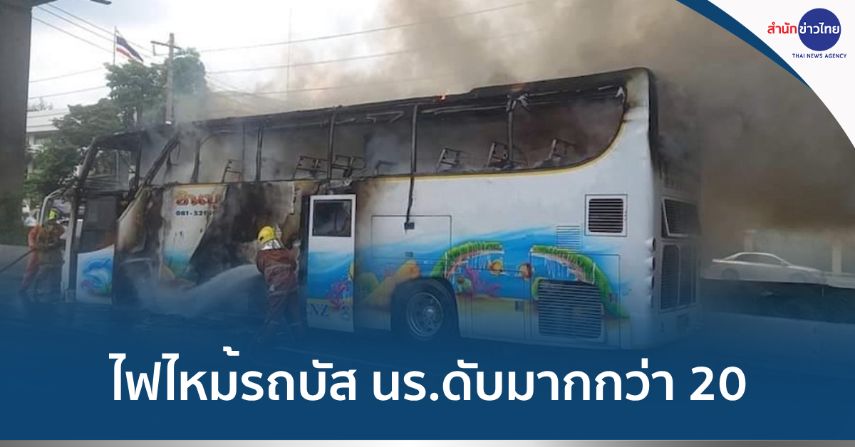 ปทุมธานี 1 ต.ค. – เจ้าหน้าที่กู้ภัย และเจ้าหน้าที่มูลนิธิร่วมกตัญญู จำนวนมาก เข้าตรวจสอบซากรถบัสนักเรียนจาก จ.อุทัยธานี ที่เกิดเพลิงไหม้ พบผู้เสียชีวิตรวมกันอยู่บริเวณด้านหลังของตัวรถมากกว่า 20 ศพ ด้าน “อนุทิน” ระบุเหตุเพลิงไหม้รถบัสพานักเรียนจากโรงเรียนวัดเขาพระยา มาทัศนศึกษา เกิดจากยางล้อรถระเบิด ทำให้เกิดประกายไฟลุกท่วมตัวรถ