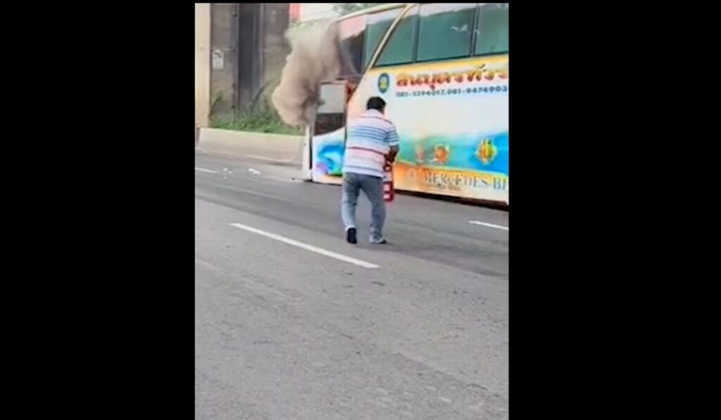 ทั้งนี้ มีการเผยแพร่คลิปขณะรถบัสเกิดเหตุไฟไหม้ พบคนขับรีบเปิดประตูลงจากรถ จากนั้นก้มลงหยิบของที่ห้องสัมภาระ ก่อนจะเดินมาเปิดประตูฉุกเฉิน แต่ไม่สามารถเปิดได้ จากนั้นค่อยๆ เดินมาถือถังดับเพลิงแต่ก็ไม่สามารถช่วยดับไฟได้ ก่อนจะหายตัวล่องหนจากที่เกิดเหตุ