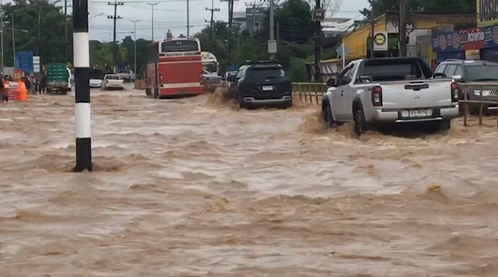 เชียงใหม่ 4 ต.ค. – ฝนตกหนักทั้งคืน ทำให้น้ำตกแม่สา อ.แม่ริม จ.เชียงใหม่ มีน้ำป่าไหลรุนแรง สีแดงขุ่น สั่งปิดต่อเนื่อง ขณะที่หลายหมู่บ้านยังจมน้ำ