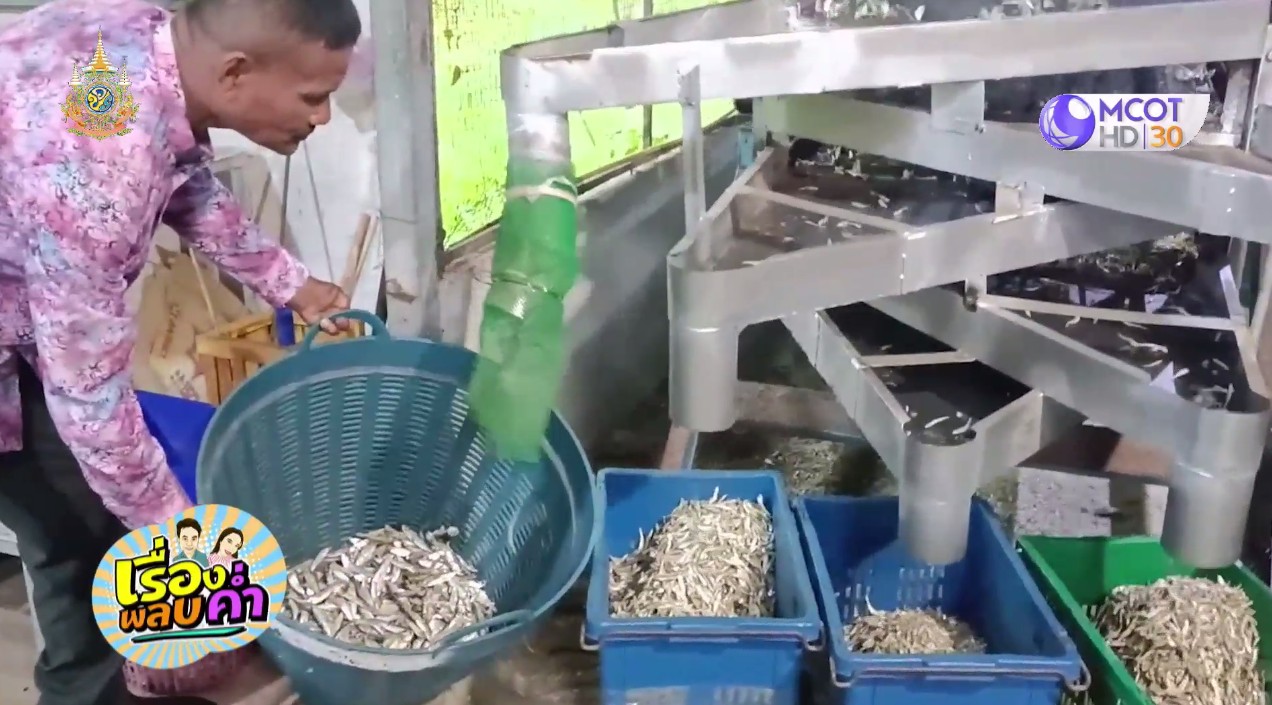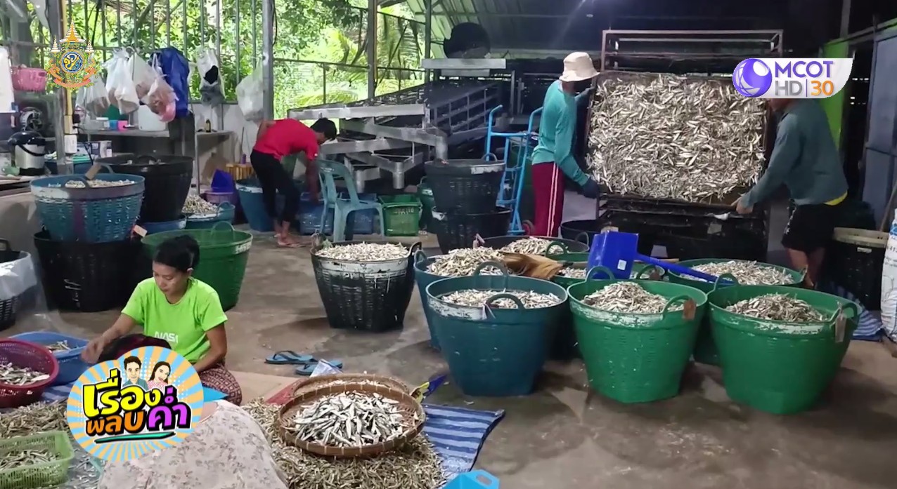 จากนั้นได้พาไปชมกระบวนการผลิตเป็นปลาฉิ้งฉ้างอบแห้ง ที่โรงงานปลาฉิ้งฉ้าง “ขวัญฤทัย ปลากะตัก” ในพื้นที่ ต.พรุใน ซึ่งมีคนงานและเจ้าของโรงงานกำลังทำงานกันจ้าละหวั่น ทั้งนำปลากะตักเข้าไปในเตาอบ เมื่อแห้งได้ที่ก็นำออกมาใส่ในตะกร้าใบหนึ่ง ก่อนนำไปใส่ในเครื่องแยกขนาดตัวปลา แล้วนำมาคัดคุณภาพ เอาปลาชนิดอื่นและเศษปลอมปนออก ก่อนจะตั้งวงคัดใส่ถุงอีกครั้ง ให้ลูกค้ามารับไปขายต่อ ซึ่งพบว่าสินค้าปลาฉิ้งฉ้างเกาะยาว ส่งขายออกนอกพื้นที่เดือนละหลายล้านบาท