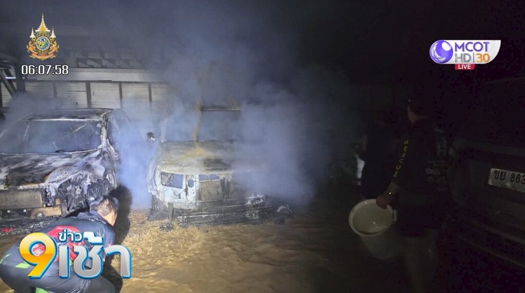 เชียงใหม่ 7 ต.ค. – เพลิงไหม้รถยนต์จอดภายในบ้านหรูหมู่บ้านแห่งหนึ่ง อ.เมืองเชียงใหม่ เสียหายหลายคัน ส่วนเจ้าของบ้านอพยพไปอยู่ที่อื่น เนื่องจากบ้านถูกน้ำท่วม