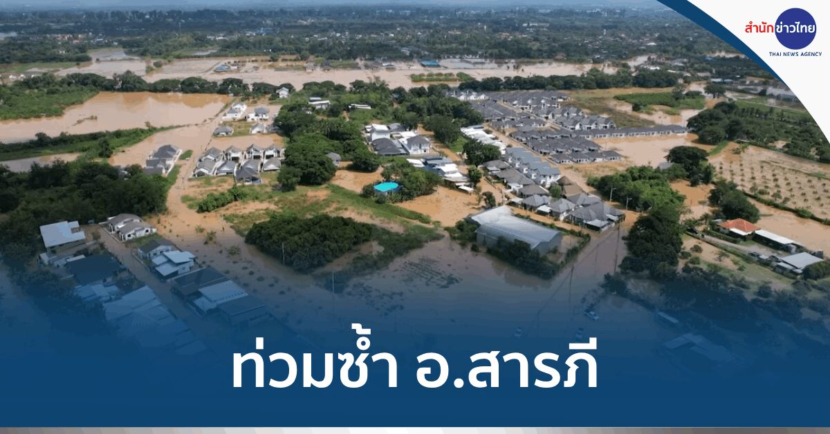 เชียงใหม่ 7 ต.ค. – หลายชุมชนในอำเภอสารภี ซึ่งรับน้ำจากตัวเมืองเชียงใหม่ ถูกน้ำทะลักเข้าท่วมรอบ 2 ชาวบ้านเพิ่งล้างคราบน้ำเน่าที่ท่วมขังรอบที่แล้วได้แค่วันเดียว ก็มาถูกน้ำท่วมซ้ำและท่วมสูงกว่าเดิม.-สำนักข่าวไทย