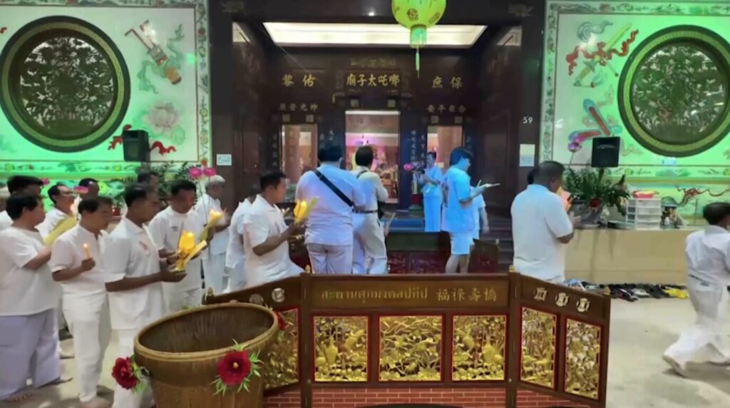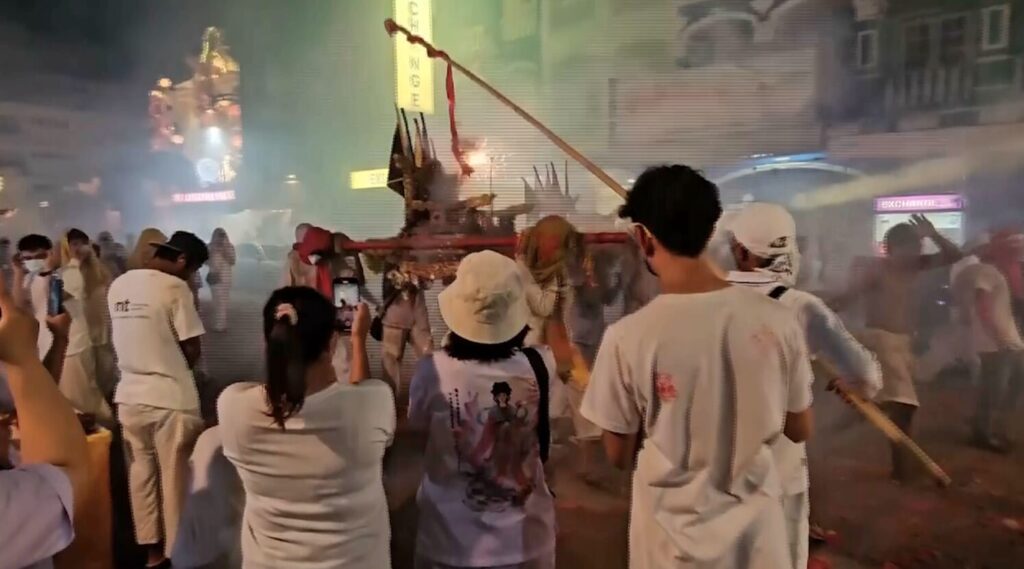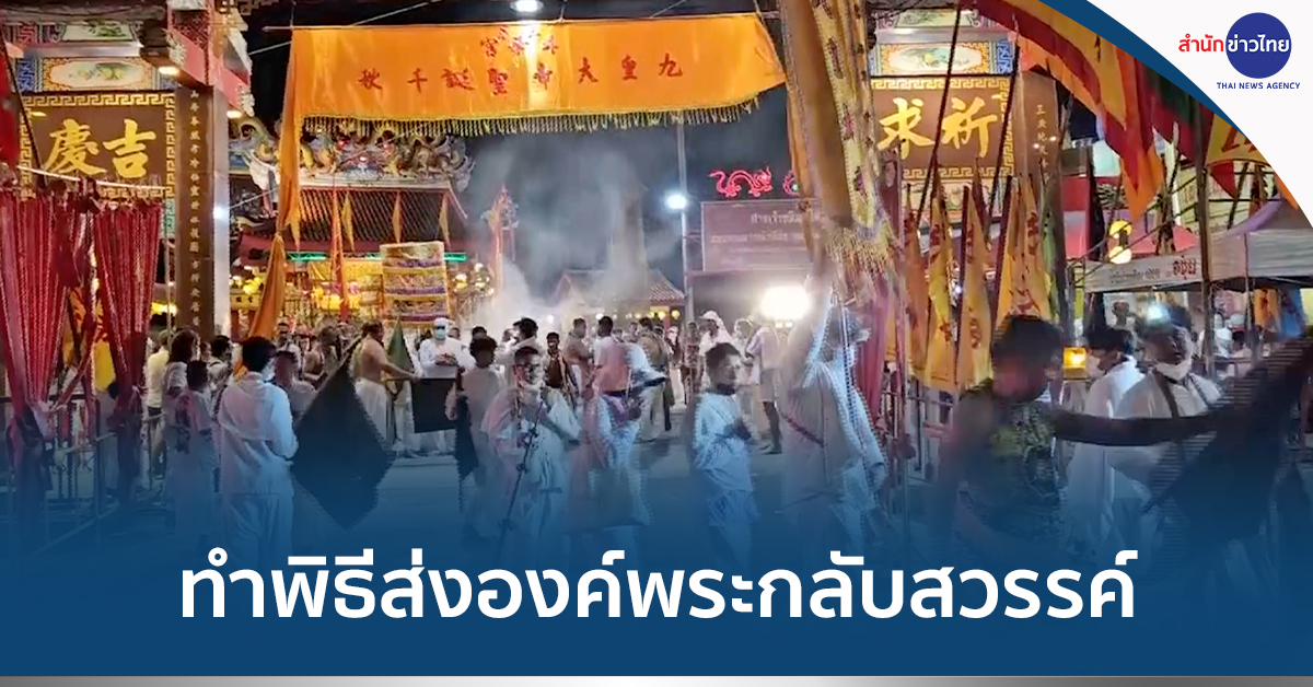 ภูเก็ต 12 ต.ค.- คืนสุดท้ายเทศกาลถือศีลกินผัก จ.ภูเก็ต ศาลเจ้ากว่า 40 แห่ง เข้าร่วมประกอบพิธีส่งองค์พระกลับสู่สรวงสวรรค์ บรรยากาศสุดคึกคัก