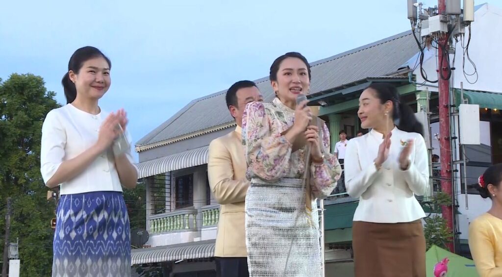 เมื่อเวลา 17.30 น.ที่ผ่านมา นางสาวแพทองธาร ชินวัตร นายกรัฐมนตรี เดินทางถึงลานนาคาเบิกฟ้า อ.โพนพิสัย จ.หนองคาย ท่ามกลางการต้อนรับจากประชาชนในพื้นที่ นายกฯ สวมใส่ผ้าสไบลาย นาคใหญ่ ลายประจำ จ.หนองคาย หมายถึงความยิ่งใหญ่ ความอุดมสมบูรณ์ ลายลักษณะหยิก หมายถึงแม่น้ำโขง จากนั้นเข้าสู่การประกอบพิธีสงฆ์
