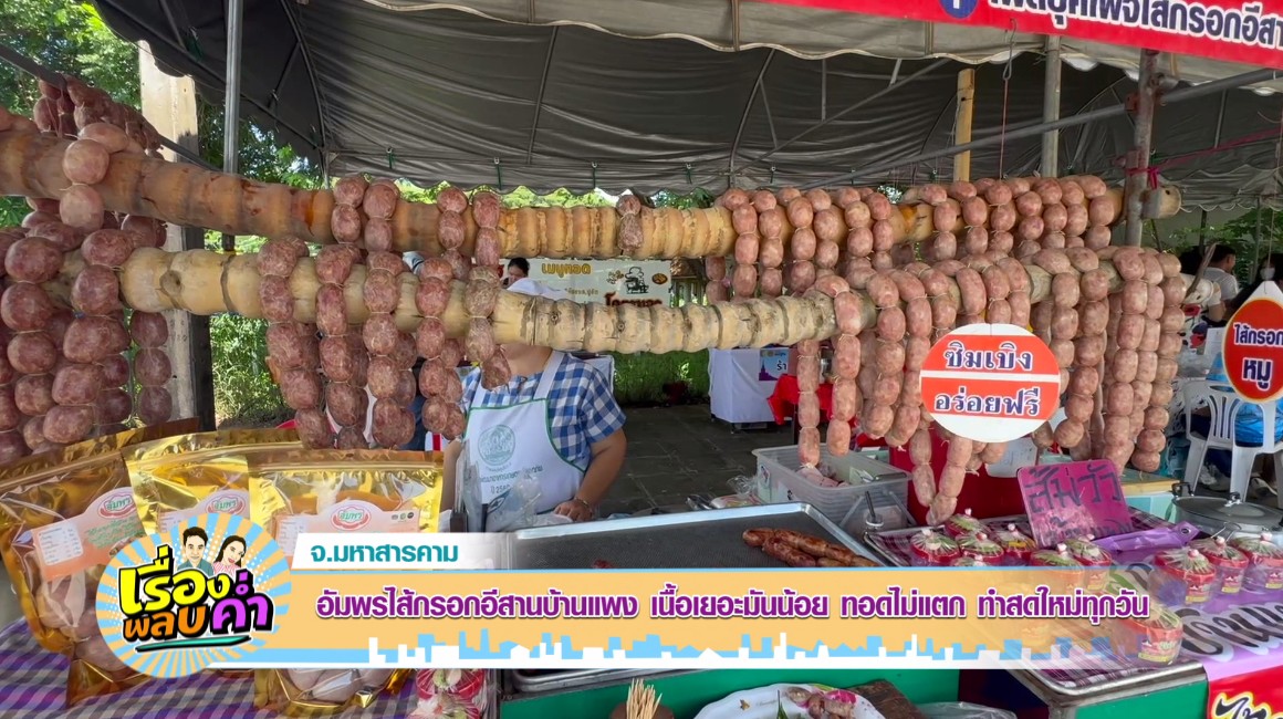 มหาสารคาม 18 ต.ค. – ของอร่อยเมืองโกสุมพิสัย ไส้กรอกอีสานบ้านแพง จ.มหาสารคาม เนื้อเยอะ มันน้อย ทอดไม่แตก ทำสดใหม่ทุกวัน ไม่ใส่สี ไม่มีดินประสิว อบใหม่ร้อนๆ กินกับข้าวเหนียวแซ่บๆ