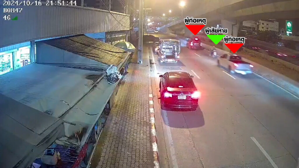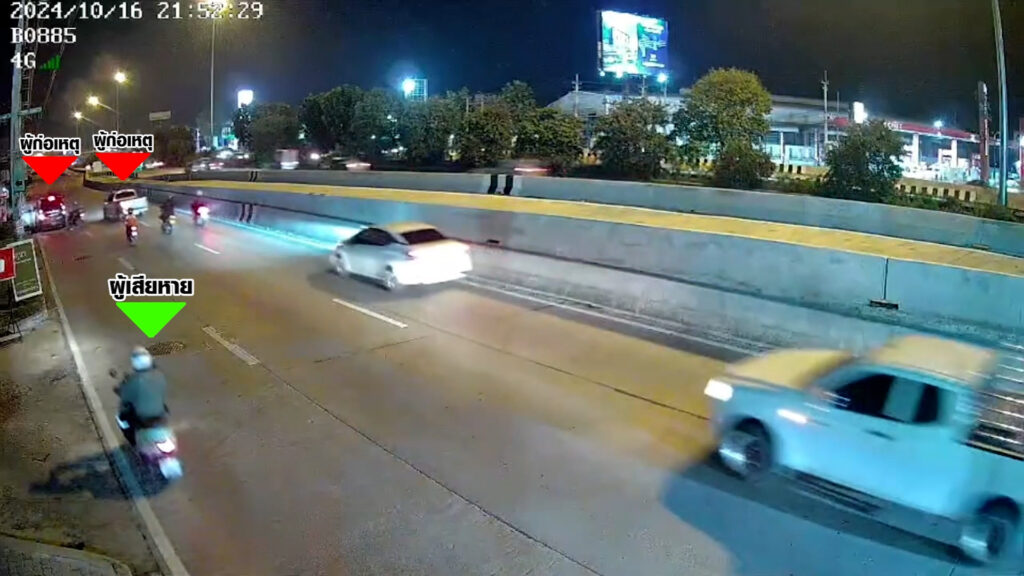 มาดูมุมวงจรปิดที่ 2 มุมนี้จะเห็นว่าลุงเร่งเครื่องมาตีคู่กับรถตู้สีดำที่เปิดไฟเลี้ยว โดยรถมีกระบะขับจี้มาไม่ห่างแล้วตีไฟเลี้ยวตามไปประกบด้วย หลังจากนั้นคนขับรถทั้งสองคันก็ลงมาตบทรัพทย์ลุงชัยพรและทำร้ายร่างกาย เหตุการณ์เกิดขึ้นเมื่อคืนวันที่ 16 ตุลาคม เวลา 21.30 น. ถนนกาญจนาภิเษก