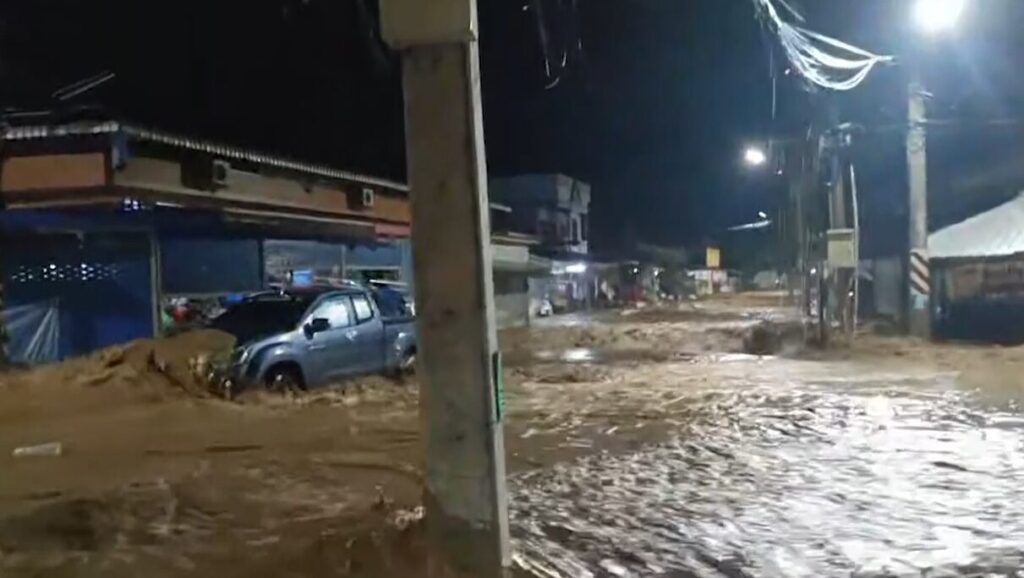 หลังจากฝนตกหนักติดต่อกันในช่วงเย็นวานนี้ (19 ต.ค.) ทำให้เกิดน้ำป่าสีแดงขุ่นไหลหลากรุนแรงจากพื้นที่ภูเขา ไหลบ่าเข้าท่วมพื้นที่ย่านการค้าของเทศบาลตำบลบ้านไร่ อ.บ้านไร่ จ.อุทัยธานี น้ำแรงจนรถไหลไปกับกระแสน้ำ ทำให้ได้รับความเสียหายเป็นจำนวนมาก บางส่วนติดอยู่บ้านชั้นบน ไม่สามารถขนของหนีน้ำ หรืออพยพออกมาจากพื้นที่ได้ทัน เนื่องจากกระแสน้ำที่ไหลมาเร็วและแรงกว่าทุกปี