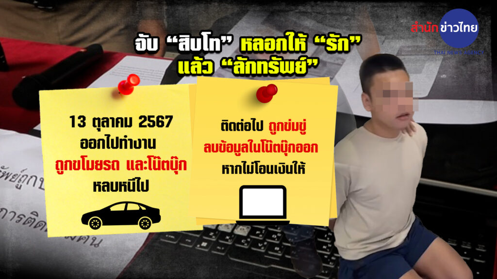 อุดรธานี 23 ต.ค.- ตำรวจอุดรธานี บุกจับทหารยศสิบโทหนีราชการ หลอกสาวให้รัก ก่อนพาเข้าบ้านแล้วกรรโชกทรัพย์ ถ่ายคลิปขู่รีดเงิน สารภาพก่อเหตุมาแล้วหลายครั้ง หาเงินลงทุนเทรดหุ้น