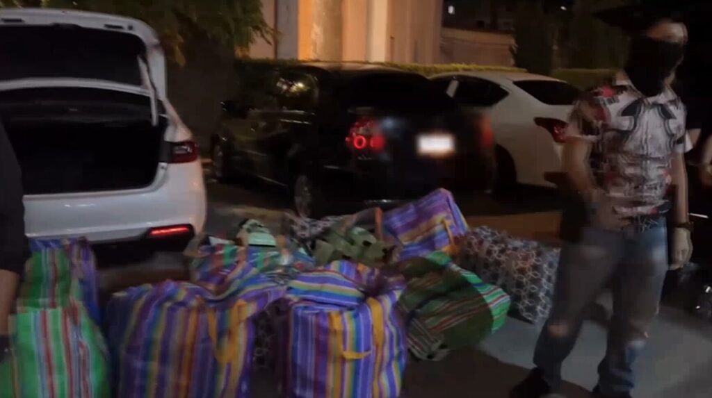 ชุดสืบสวนตำรวจภูธร จ.อุดรธานี บุกเข้าไปจับกุม น.ส.ใบตอง อายุ 21 ปี ชาว อ.หนองแสง จ.อุดรธานี หลังเจ้าหน้าที่สืบทราบว่า จะมีการส่งมอบยาเสพติดในพื้นที่เป้าหมาย วันที่ 21 ตุลาคม 2567 จึงนำกำลังไปดักซุ่มอยู่บริเวณหน้าโรงแรงแห่งหนึ่ง เขตเทศบาลนครอุดรธานี กระทั่งเวลา 18.30 น. พบรถเก๋งสีขาว จอดหน้าโรงแรม และมีผู้หญิง 1 คน เดินลงมาที่รถ ทราบชื่อภายหลังว่า น.ส.ใบตอง จึงแสดงตัวขอตรวจค้นภายในห้องโดยสารและที่เก็บของหลังรถ พบเต็มไปด้วยกระสอบสีรุ้ง จำนวน 12 กระสอบ อัดแน่นเต็มคันรถ ในกระสอบพบถุงผลิตภัณฑ์ใบชาแห้ง มีโลโก้ภาษาจีน น้ำหนักถุงละ 1 กก. จำนวน 354 ถุง จากการตรวจสอบพบว่าเป็นไอซ์ทั้งหมด จึงควบคุมตัว น.ส.ใบตอง พร้อมของกลางมาทำการสอบสวน เบื้องต้นสารภาพว่า พ่อชื่อ วี สัญชาติลาว อายุประมาณ 50 ปี โทรมาติดต่อขอฝากของ บอกจะมีคนมารับไปอีกทอดหนึ่ง ตนไม่รู้ว่าข้างในเป็นยาเสพติด เพียงแต่รับฝากจากพ่อเท่านั้น