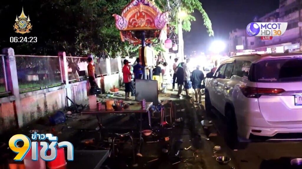 สภาพความเสียหายของร้านก๋วยเตี๋ยว 2 ร้าน ริมถนนอุดรดุษฎี ฝั่งขาเข้าตัวเมืองอุดรธานี หลังถูกรถกระบะพุ่งชนอย่างแรง เหตุเกิดช่วง 3 ทุ่ม เมื่อคืนนี้ (24 ต.ค.)