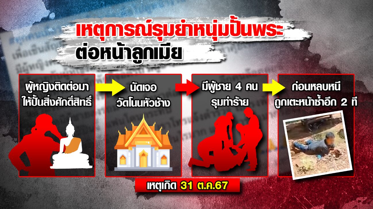 ชัยภูมิ 1 พ.ย. – อุกอาจ! หลอกหนุ่มปั้นพระไปรุมยำในวัดต่อหน้าลูกและภรรยา ฝ่ายผู้บาดเจ็บยันไม่เคยรู้จักกันมาก่อน วอนตำรวจเร่งจับตัวคนร้ายดำเนินคดี