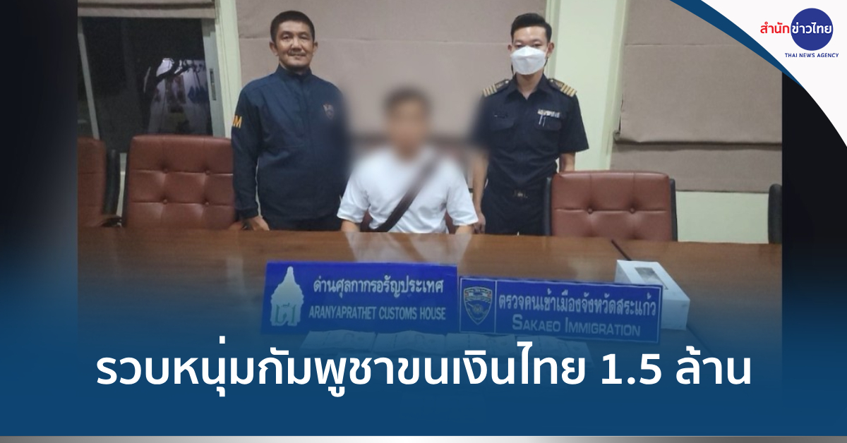 สระแก้ว 1 พ.ย. – ตำรวจ ตม.สระแก้ว รวบหนุ่มกัมพูชา ขนเงินไทย 1.5 ล้านบาท เตรียมนำออกไปกัมพูชา คุมตัวพร้อมของกลางสอบสวน คาดเกี่ยวข้องกับแก๊งคอลเซ็นเตอร์