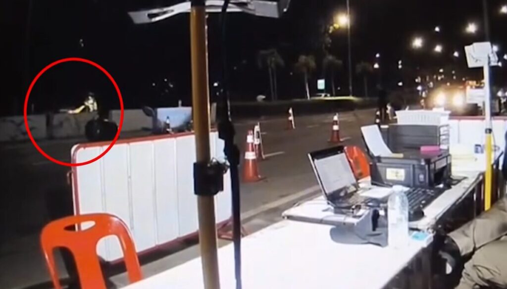 เหตุการณ์เกิดขึ้นประมาณ 02.20 น. วันนี้ (2 พ.ย.) บนถนนสายสองจอมเทียน ต.หนองปรือ อ.บางละมุง จ.ชลบุรี ชายต่างชาติขี่รถจักรยานยนต์บิ๊กไบค์ ฮอนด้า ซีบี 650 ทะเบียนกรุงเทพมหานคร ฝ่าด่านตรวจชนเจ้าหน้าที่นายหนึ่งล้มศีรษะฟาดพื้นบาดเจ็บสาหัส ทั้งตำรวจและเจ้าหน้าที่กู้ภัยต่างพยายามเข้าควบคุมตัวชายต่างชาติ แต่ชายคนนี้รูปร่างสูงใหญ่ดิ้นสะบัดตัวแล้ววิ่งหนีเข้าป่าละเมาะริมทางไปได้