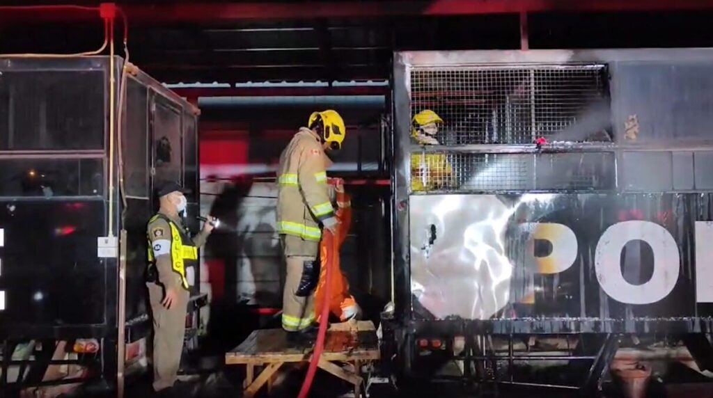 เมื่อคืนที่ผ่านมา เวลาประมาณ 22.30 น. ตำรวจ สภ.เมืองอุดรธานี ได้รับแจ้งมีเหตุเพลิงไหม้ตู้เก็บของตลาดนัดคลองถมบ้านหนองนาคำ อ.เมือง จ.อุดรธานี ทั้งตำรวจ มูลนิธิส่งเสริมธรรม และรถดับเพลิงเทศบาลหนองบัว ก็ไปยังจุดเกิดเหตุ พบตู้สีดำเขียนคำว่า police ซึ่งถูกดัดแปลงจากรถ มาเป็นตู้เก็บของพ่อค้าแม่ค้าตลาดนัด พบว่าเพลิงกำลังลุกไหม้ ต้องใช้น้ำฉีดเป็นเวลานานกว่า 30 นาทีจึงควบคุมเพลิงไว้ได้