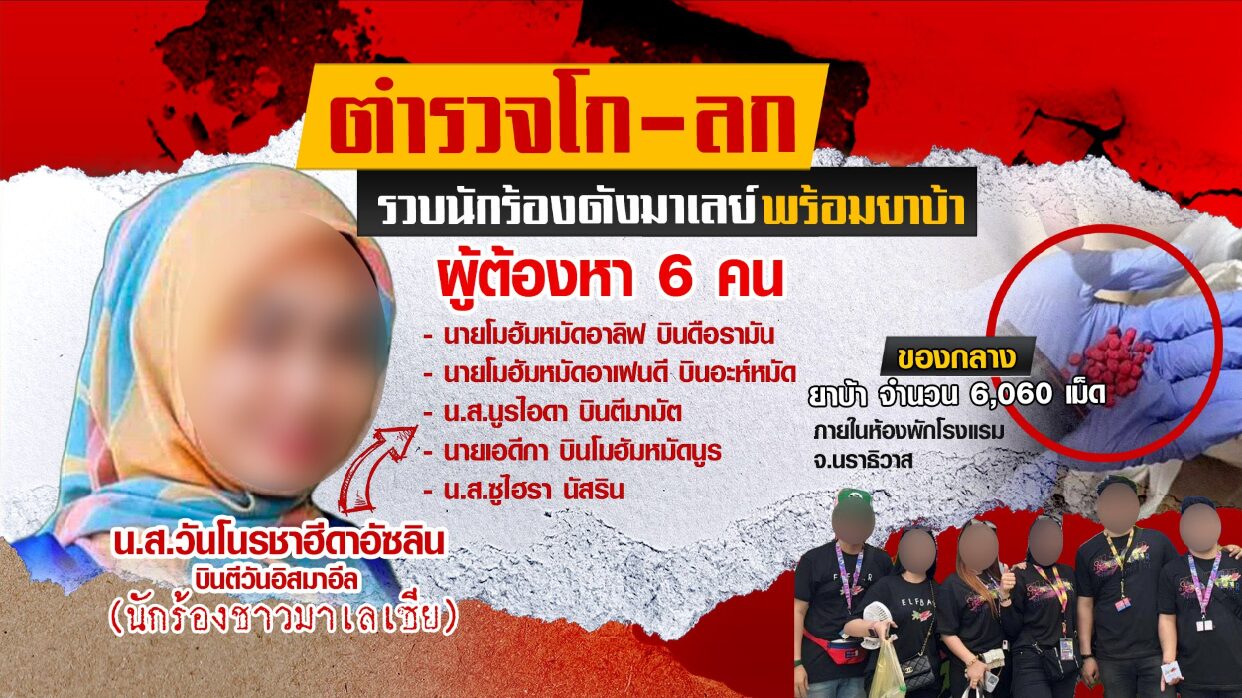 ความคืบหน้ากรณีตำรวจ สภ.สุไหงโก-ลก จ.นราธิวาส จับกุมตัว น.ส.วันโนรชาฮีดาอัซลิน บินตีวันอิสมาอีล อายุ 28 ปี นักร้องดังชาวมาเลเซีย พร้อมพวก รวม 6 คน ภายในห้องพักโรงแรมแห่งหนึ่งใน ต.สุไหงโก-ลก อ.สุไหงโก-ลก จ.นราธิวาส เมื่อวันที่ 1 พ.ย.67 เวลา 03.30 น. ซึ่งพนักงานสอบสวนส่งตัวฝากขังที่เรือนจำ จ.นราธิวาส เมื่อวานนี้ (4 พ.ย.) นั้น