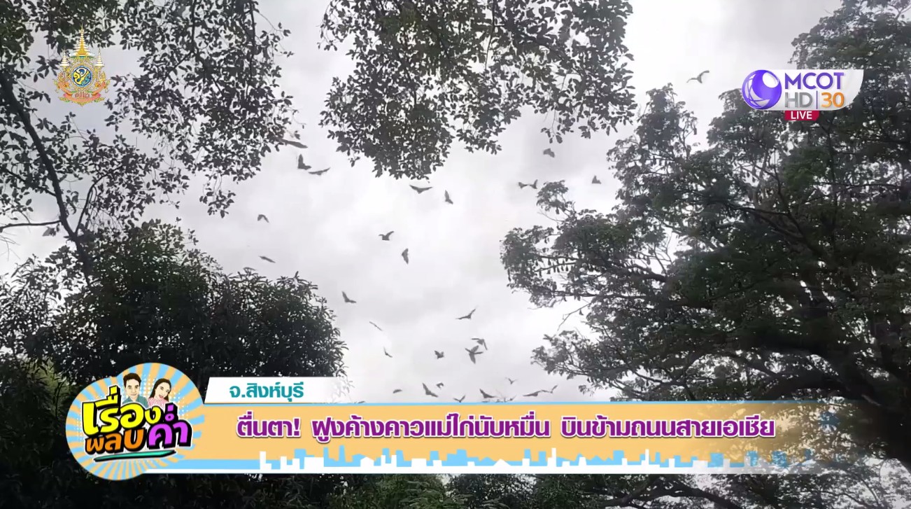 สิงห์บุรี 6 พ.ย. – ตื่นตา! ฝูงค้างคาวแม่ไก่นับหมื่นตัวบินข้ามถนนสายเอเชีย จ.สิงห์บุรี ออกหากินหลังพระอาทิตย์ตกดิน มาเที่ยวชมได้ทุกวันในเวลาพลบค่ำ