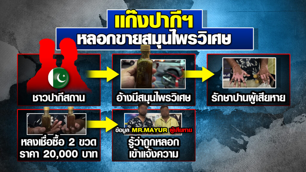 ชลบุรี 7 พ.ย. – แก๊งแขกปากีสถานหลอกหนุ่มอินเดียซื้อสมุนไพรราคาแพง อวดอ้างสรรพคุณรักษาโรคหายในพริบตา ก่อนพบว่าถูกหลอก จึงเข้าแจ้งความ พร้อมเตือนภัยอย่าหลงกล