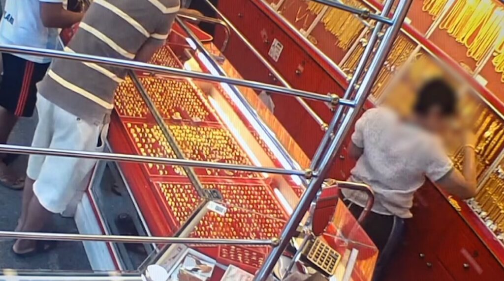 จากนั้นทางร้านตรวจสอบกล้องวงจรปิดพบพฤติกรรมของแม่บ้านคนดังกล่าว หยิบทองจากตู้โชว์ภายในร้านใส่ผ้ากันเปื้อนอย่างตั้งใจ ทางร้านทองจึงตรวจสอบย้อนหลัง พบหลักฐานเพิ่มอีกว่าแม่บ้านคนดังกล่าวขโมยทองไปกว่า 47 ครั้ง กว่า 700 บาท รวมมูลค่ากว่า 20 ล้านบาท โดยกล้องวงจรปิดบันทึกหลักฐานว่ามีการขโมยตั้งแต่ปี 64 เป็นต้นมา และในเฟซบุ๊กส่วนตัวของแม่บ้านแสบรายนี้มีการโพสต์ไปซื้อที่ดิน ซื้อรถจักรยานยนต์คันใหม่ ลูกสาวใส่สร้อยคอเส้นใหญ่ ถือว่าผิดปกติ