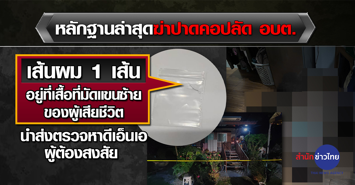 ปทุมธานี 10 พ.ย.- ตำรวจพบเส้นผมต้องสงสัยในผ้ามัดศพ คดีฆ่าปาดคอ “ปลัดนก” คาบ้านพัก เร่งนำส่งตรวจดีเอ็นเอ ตั้ง 3 ปมชนวนสังหารโหด