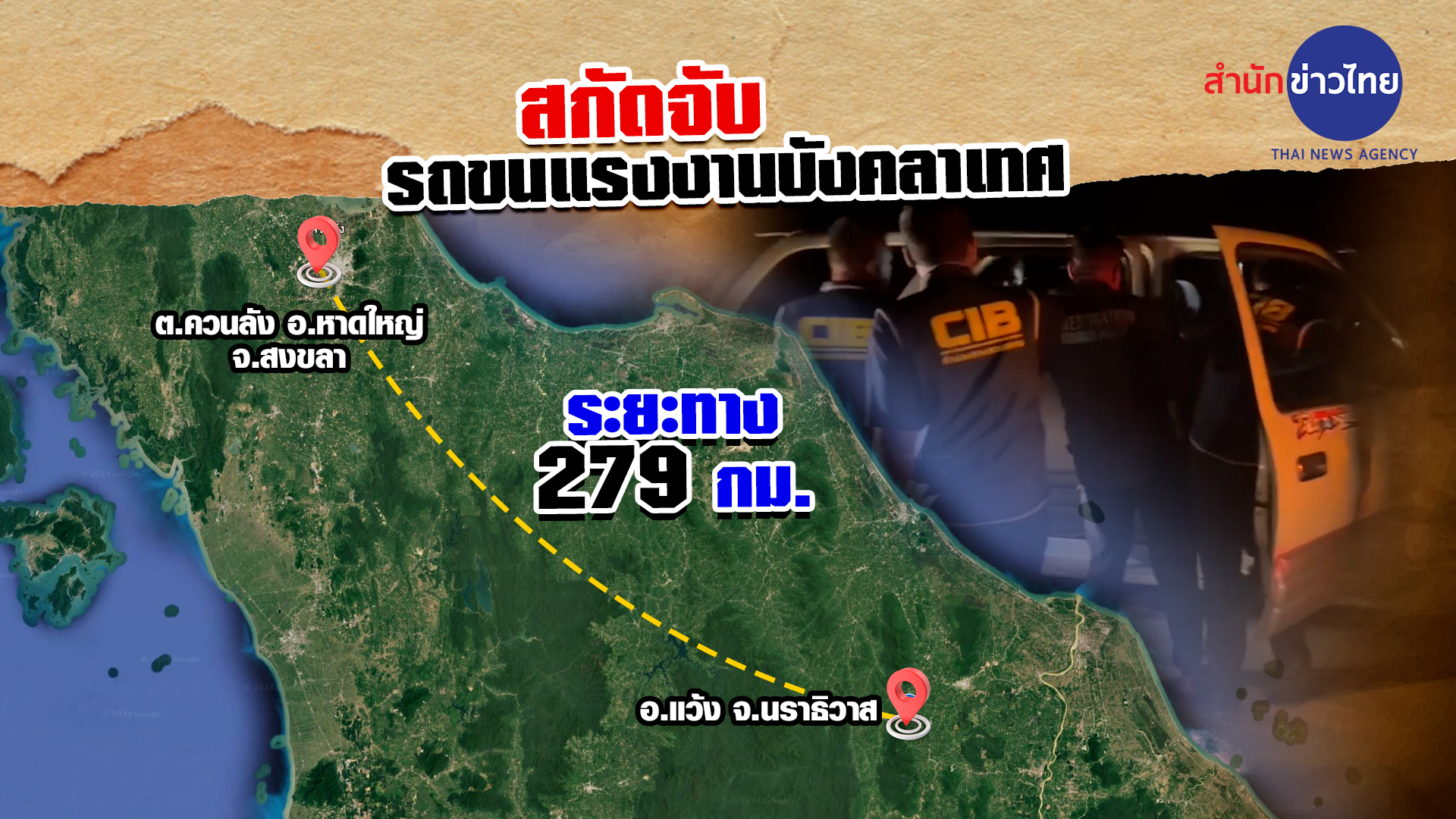 จากการตรวจสอบพบเป็นแรงงานชาวบังกลาเทศ 15 คน นั่งอัดกันมาในรถ และไม่พบเอกสารถูกกฎหมาย ก่อนคุมตัวทั้งแรงงาน และนายอิสมาแอ อายุ 43 ปี ชาวปัตตานี คนขับรถไปสอบสวนต่อ โดยนายอิสมาแอ ให้การว่าไปรับจ้างพาแรงงานกลุ่มนี้มาจากพื้นที่ ต.ควนลัง อ.หาดใหญ่ เตรียมไปส่งยัง อ.แว้ง จ.นราธิวาส เพื่อจะลักลอบข้ามแดนเข้าประเทศมาเลเซียต่อไป ด้านตำรวจเร่งขยายผลเพื่อจับกุมตัวการใหญ่มาดำเนินคดีเร็วนี้ .-สำนักข่าวไทย