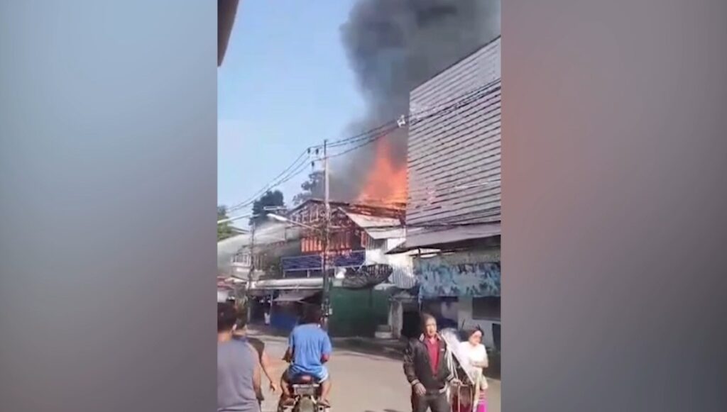 ตาก 10 พ.ย. – เพลิงไหม้บ้านไม้สักเปิดเป็นร้านค้า ในตลาดสดเทศบาลตำบลแม่ระมาด จ.ตาก เสียหายทั้งหลัง เงินสด 1 ล้านบาท ที่เก็บไว้บนหัวเตียงนอนอยู่ในสภาพสมบูรณ์ ขณะที่พ่อค้าแม่ค้าต่างขนย้ายสิ่งของหนีไฟโกลาหล