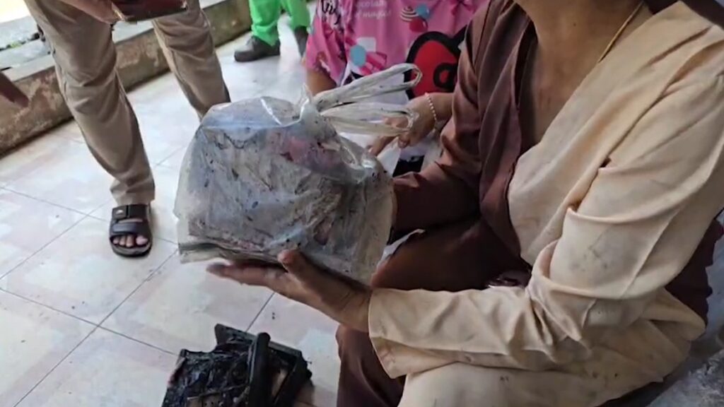 นางสาวเนตรละไม อายุ 47 ปี ลูกสาวเจ้าของบ้าน รีบสำรวจทรัพย์สินมีค่าพบว่าชั้นสองถูกเพลิงไหม้เสียหายหนัก แต่เงินสด 1 ล้านบาท ที่เก็บไว้บนหัวเตียงห้องนอนกลับไม่ถูกไฟไหม้ แต่เปียกน้ำจากการดับเพลิง