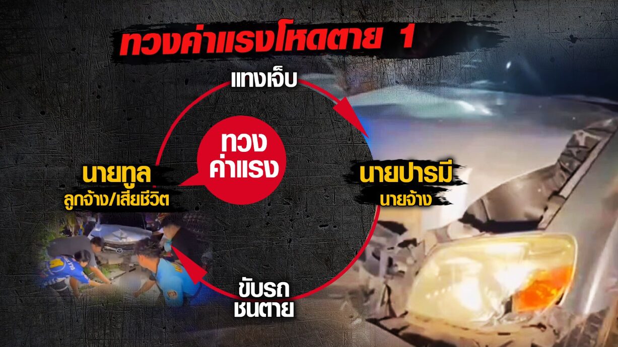 อย่างไรก็ดีจากการสอบสวนเบื้องต้นทราบว่านายปารมี ผู้บาดเจ็บเป็นนายจ้างของนายทูล ผู้ตาย โดยมารับเหมาทำบ้านด้วยกัน ห่างจากจุดเกิดเหตุประมาณ 5-6 หลัง ก่อนเกิดเหตุได้นั่งกินข้าวและดื่มเหล้าด้วยกัน ขณะนั่งล้อมวงกินข้าวดื่มเหล้าอยู่นั้น นายทูล หนุ่มไทยใหญ่ซึ่งเป็นลูกน้อง ได้เอ่ยปากทวงถามเงินค่าแรงจากนายปารมี นายจ้าง เพื่อจะเก็บไว้ไปใช้จ่าย ทำให้นายจ้างไม่พอใจจนถึงขึ้นเกิดมีปากเสียงทะเลาะกัน ก่อนที่นายทูล จะคว้าเหล็กแหลมจวงแทงนายปารมี เข้าบริเวณหน้าอก นายปารมี เห็นท่าไม่ดีลุกวิ่งหนีไปขึ้นรถกระบะที่จอดอยู่หน้าบ้าน แต่นายทูล ยังโกรธแค้นนายจ้างไม่หายจึงคว้าเอามีดวิ่งไล่ตามออกไปหวังจะทำร้ายซ้ำ และเป็นจังหวะเดียวกับนายปารมี ขับรถออกมาจึงขับพุ่งเข้าชนอัดใส่รั้วบ้านจนเสียชีวิต
