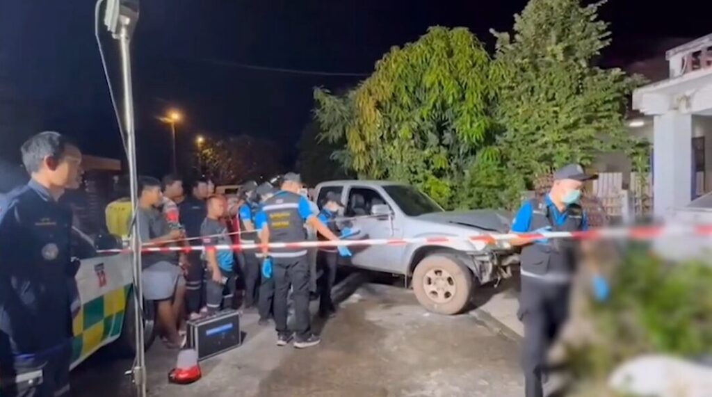 ระยอง 15 พ.ย. – หนุ่มไทยใหญ่คว้าเหล็กแหลมแทงนายจ้าง หลังมีปากเสียงปมทวงเงินค่าแรง นายจ้างวิ่งหนีตายขึ้นรถกระบะขับพุ่งชนลูกจ้างที่ถือมีดไล่ฟันซ้ำอัดรั้วบ้าน เสียชีวิตคาที่